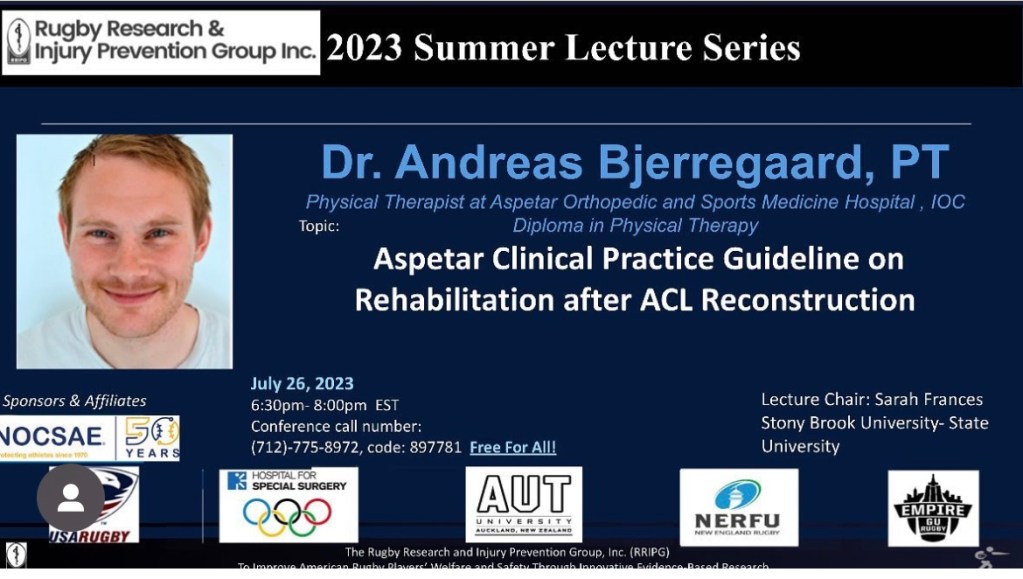 Earlier this week I had the opportunity to join Rugby Research and Injury Prevention Group @rripg’s Summer Lecture Series 2023 (in cooperation with @USArugby and @HSpecialSurgery) presenting our article “Aspetar Clinical Practice Guideline on Rehabilitation after ACL Reconstruction” that was published in BJSM earlier this year.