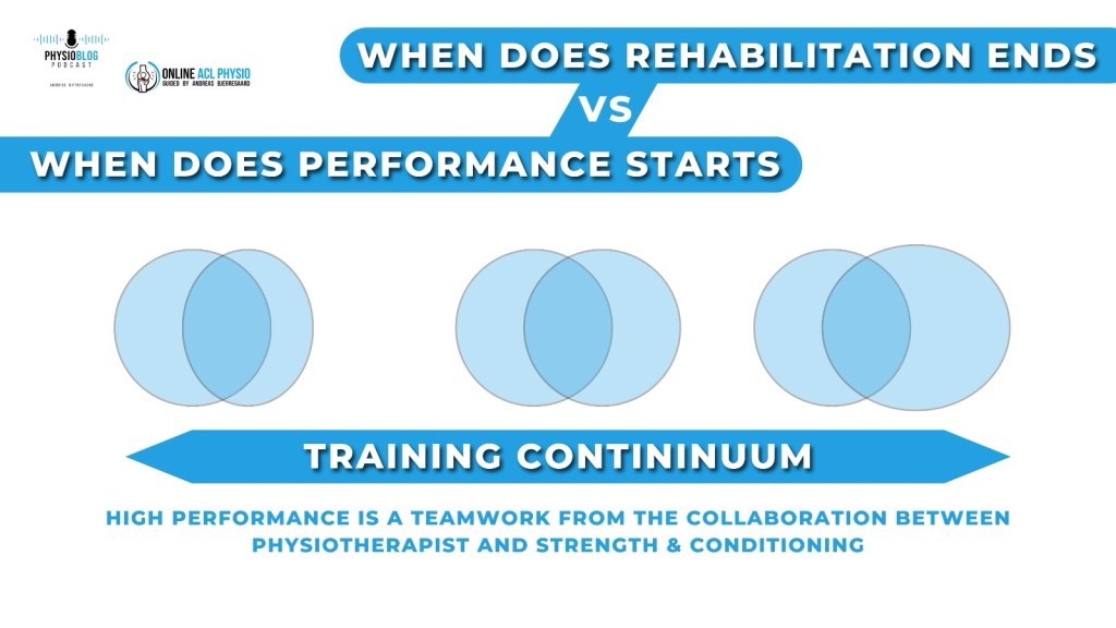 Throughout rehabilitation, the physiotherapist’s role is to initiate rehab, manage pain, restore function, mobility, strength, and establish expectations based on different criteria, goals, and timeframes. But when does rehabilitation end, and when does performance start?